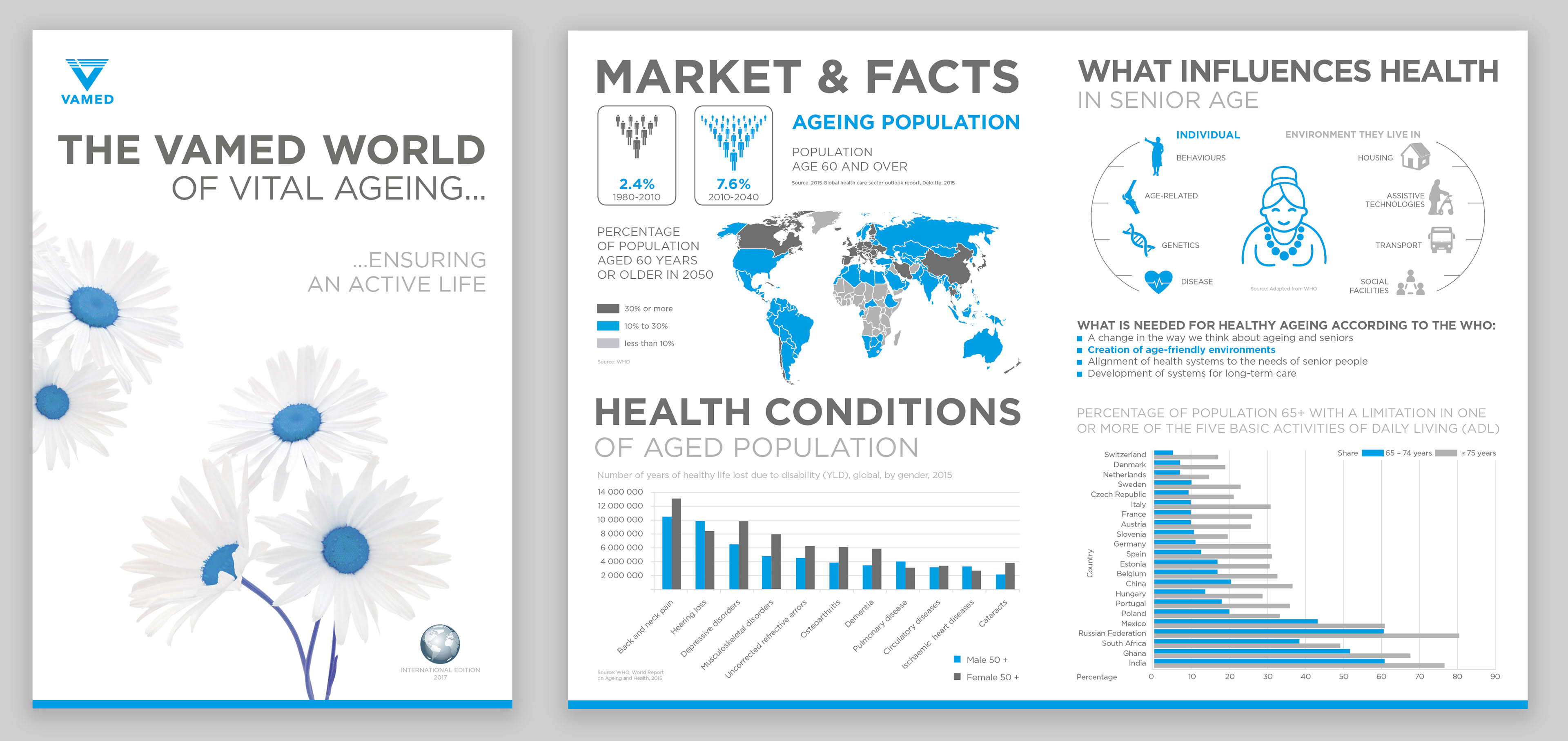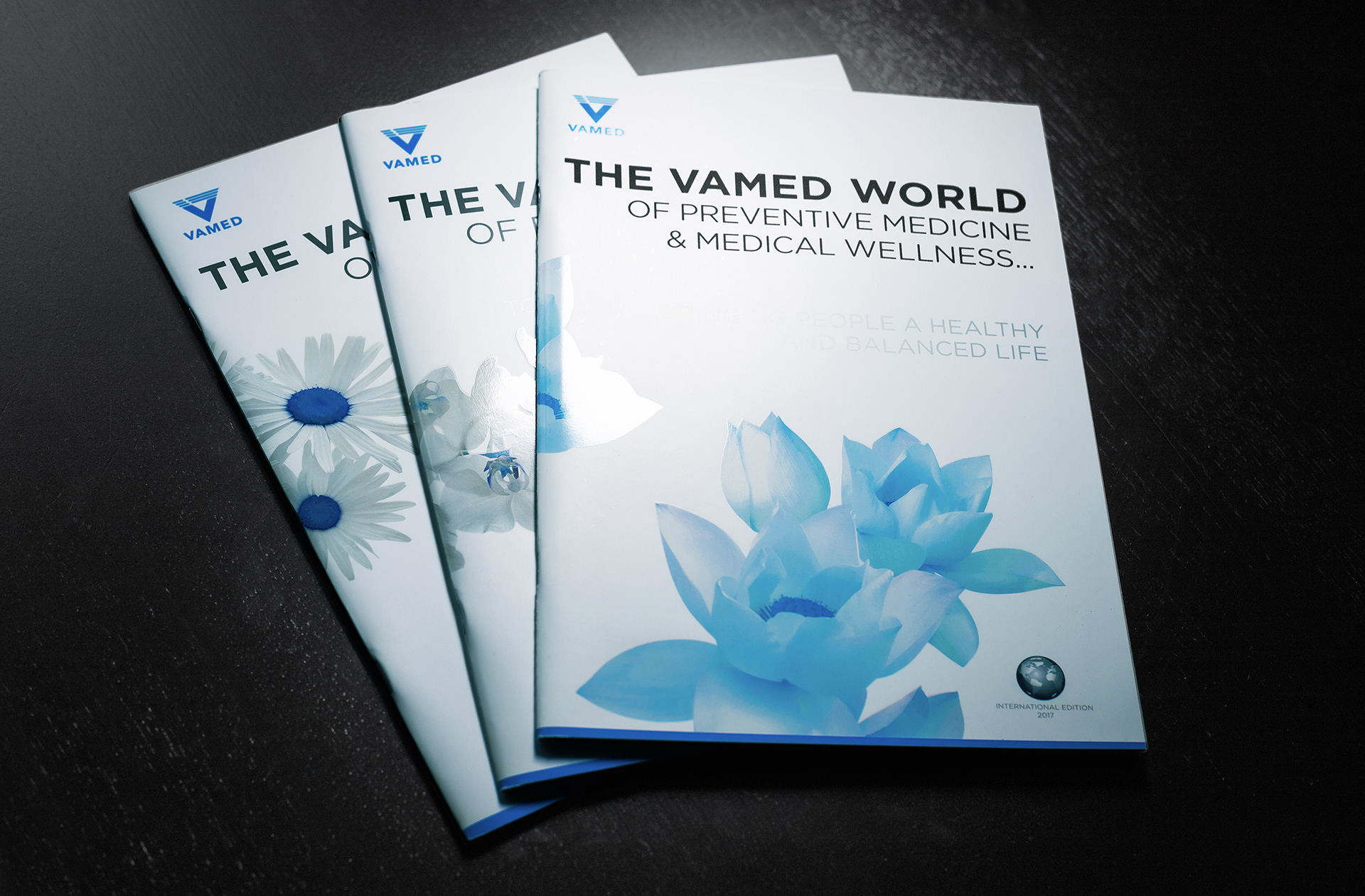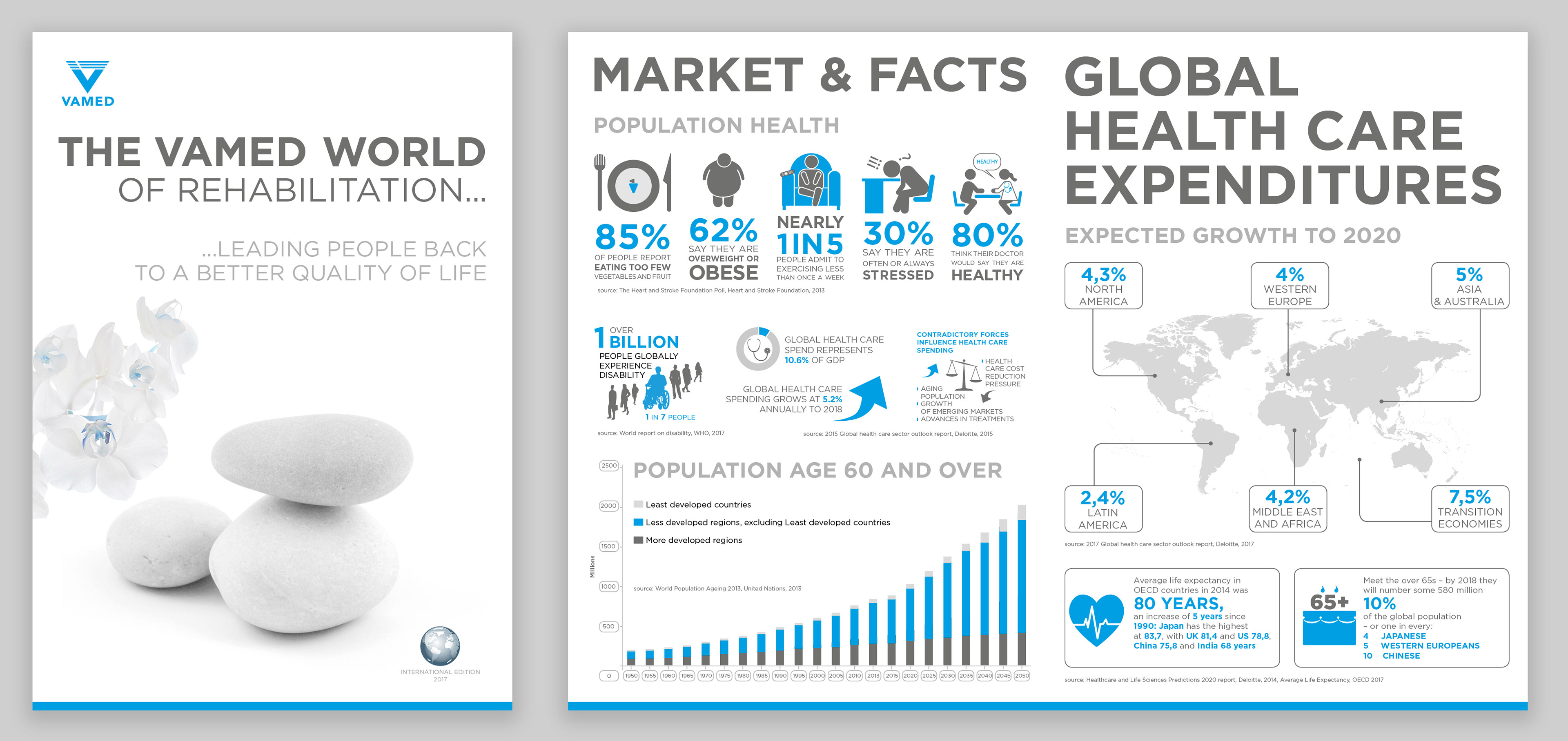 VAMED Grafické zpracování tištěných prezentací THE VAMED WORLD skupiny VAMED.