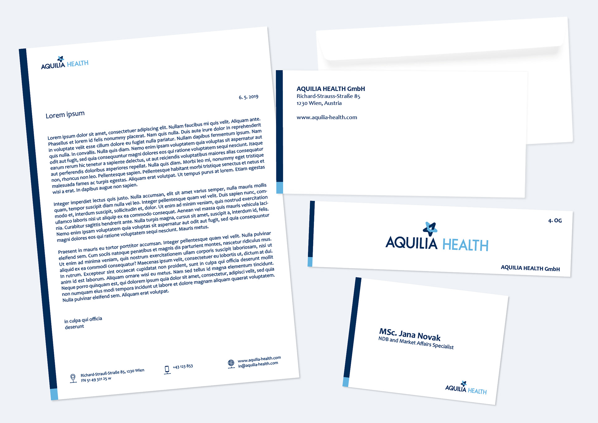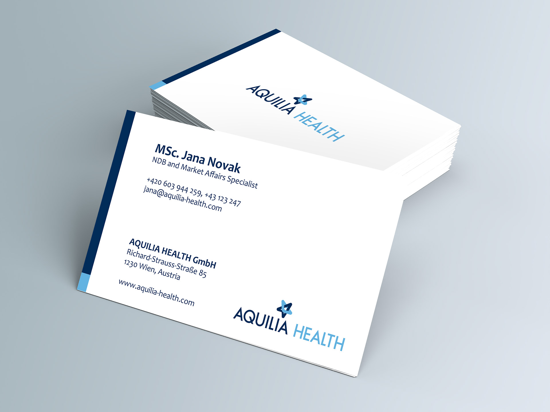AQUILIA HEALTH Firemní styl pro společnost zabývající se rozvojem obchodních příležitostí po celém světě.