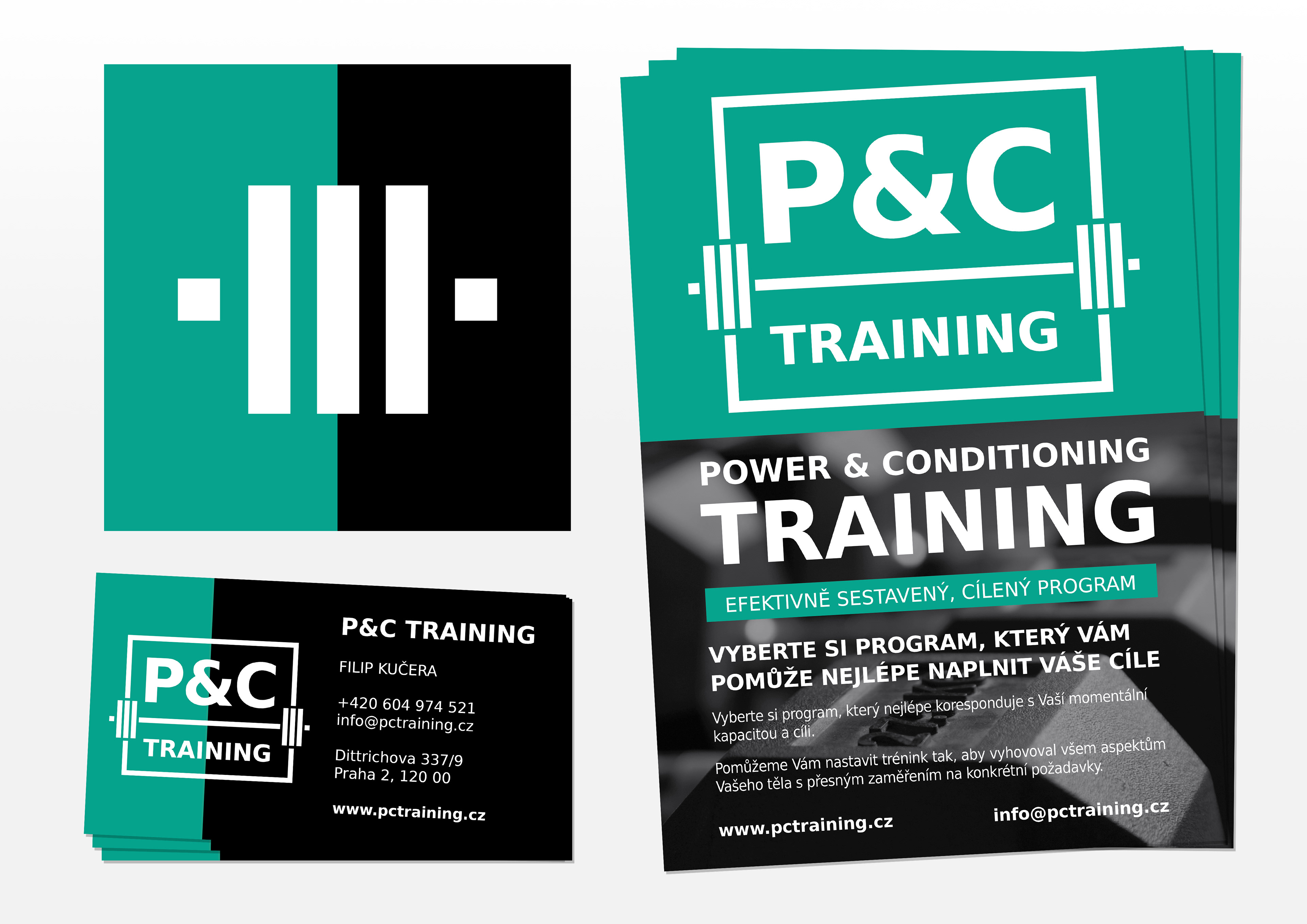 P&C TRAINING Firemní styl pro společnost poskytující individuální tréninkové programy.